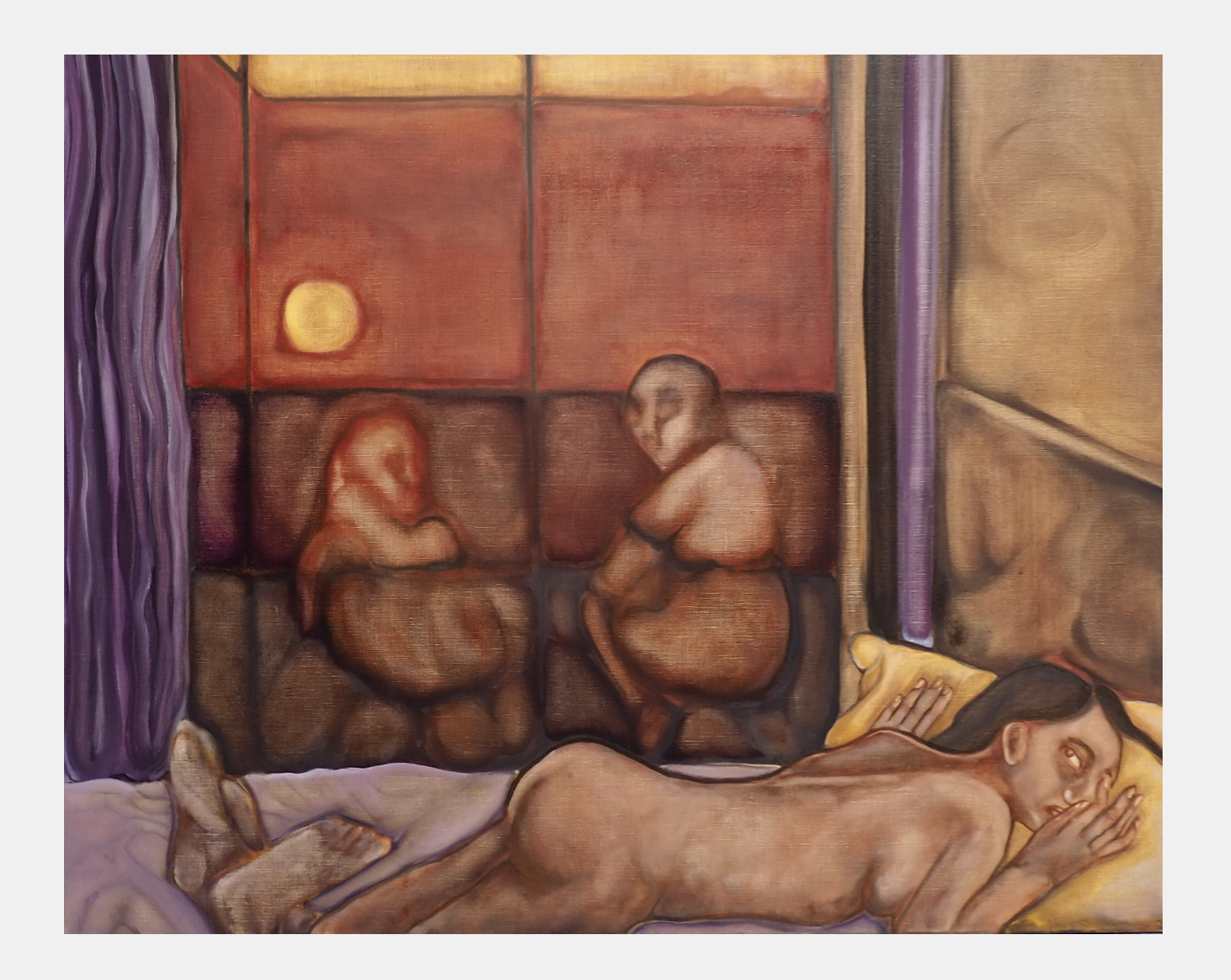 Electra’s work is grounded in oil paint + raw pigment with use of smoke, ash, and pastel.